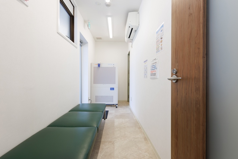 発熱外来専用の待機室には、高性能フィルターを搭載した空気清浄機を設置しています。ウイルスや花粉、PM2.5などの微粒子を効率的に除去し、室内の空気を常に清潔に保ちます。換気が難しい環境でも安心してお待ちいただけるよう、定期的なフィルター交換とメンテナンスも徹底しています。